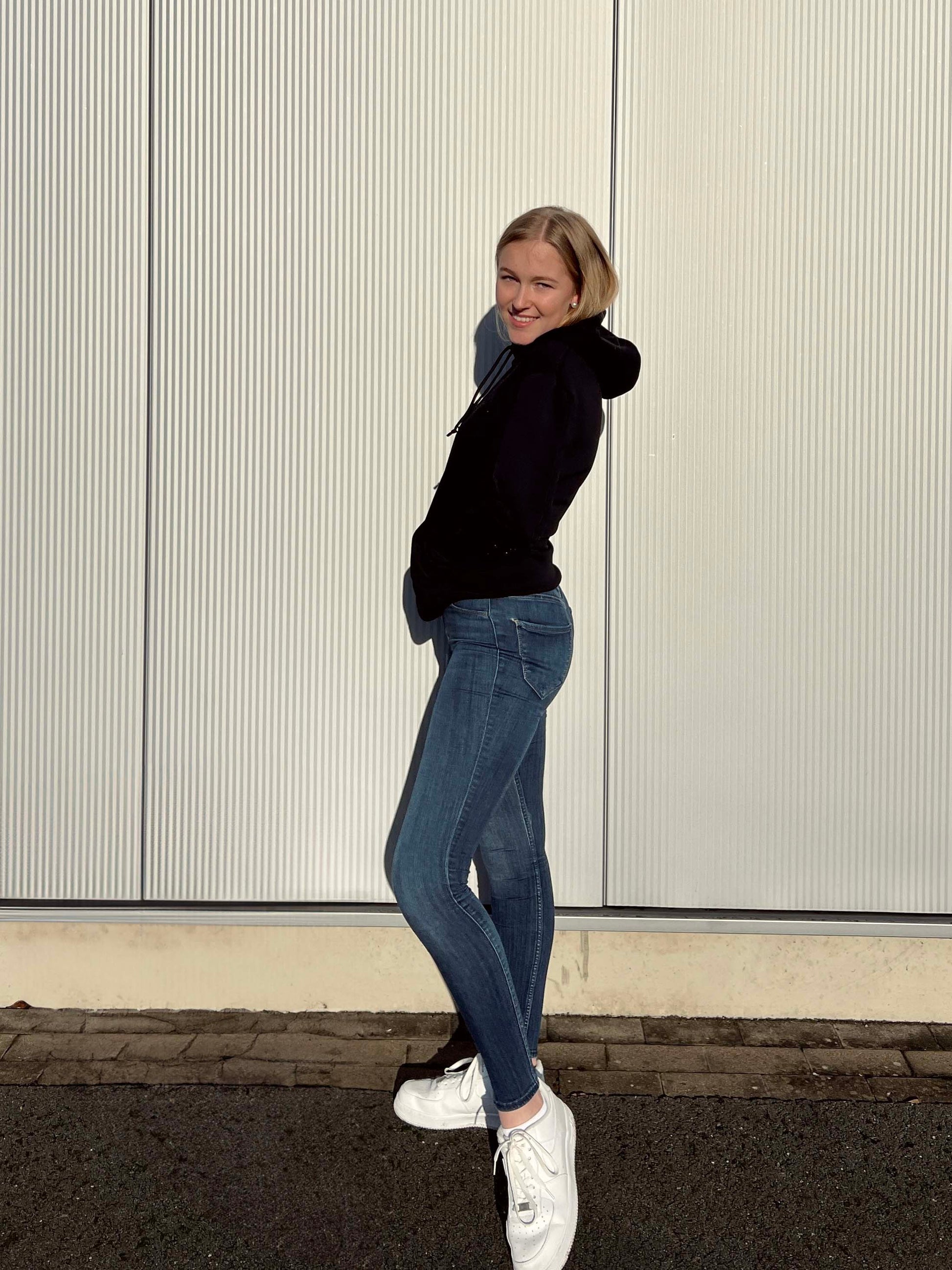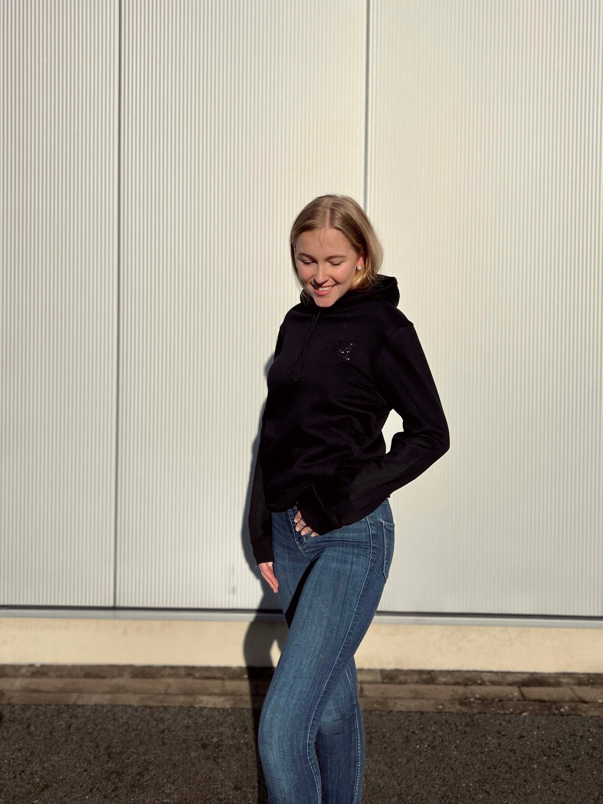Hinweis: Der Hoodie ist in Kindergrößen an den Taschen etwas anders geschnitten, da diese weiter in der Mitte liegen, und er hat keine Kordeln.