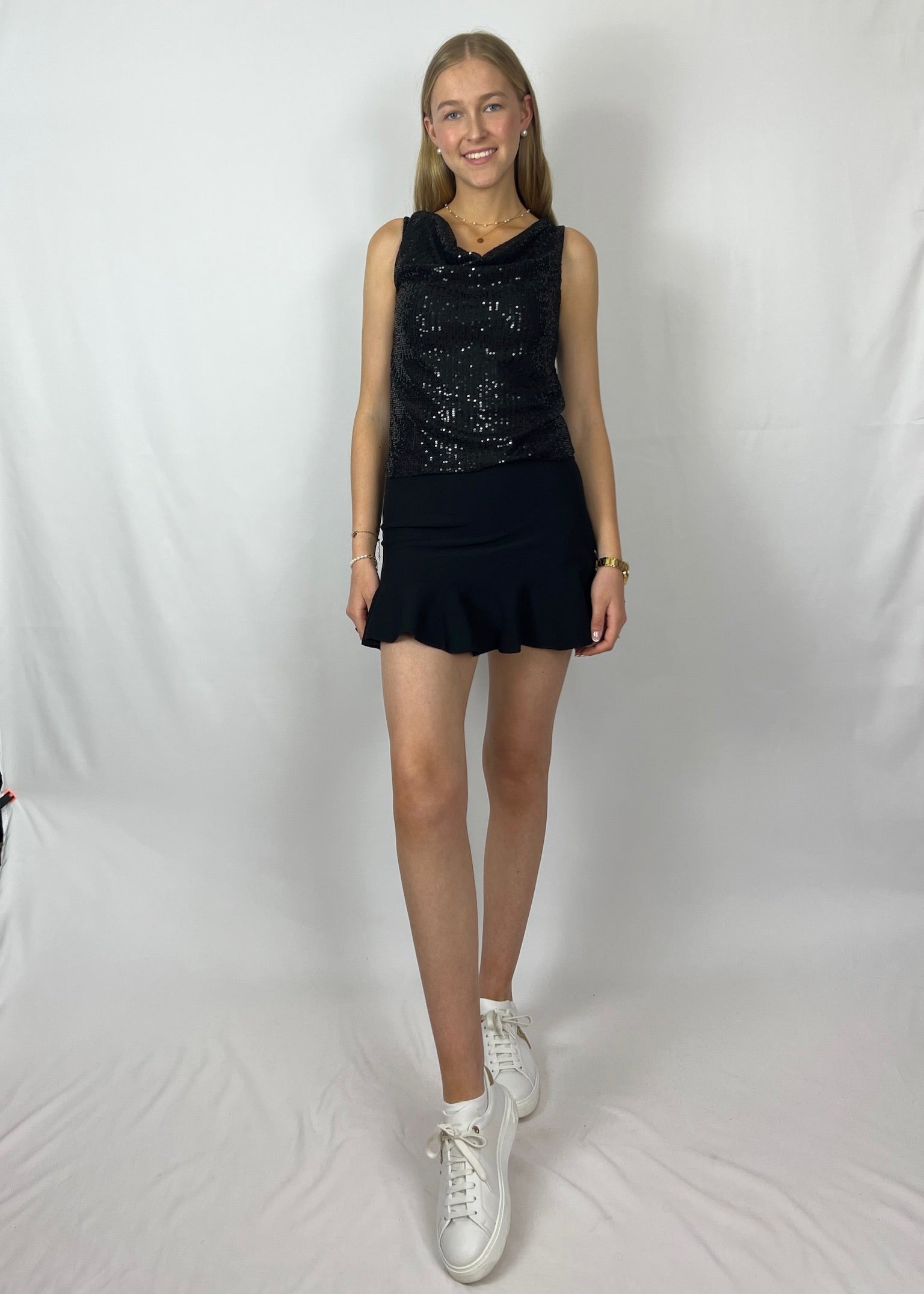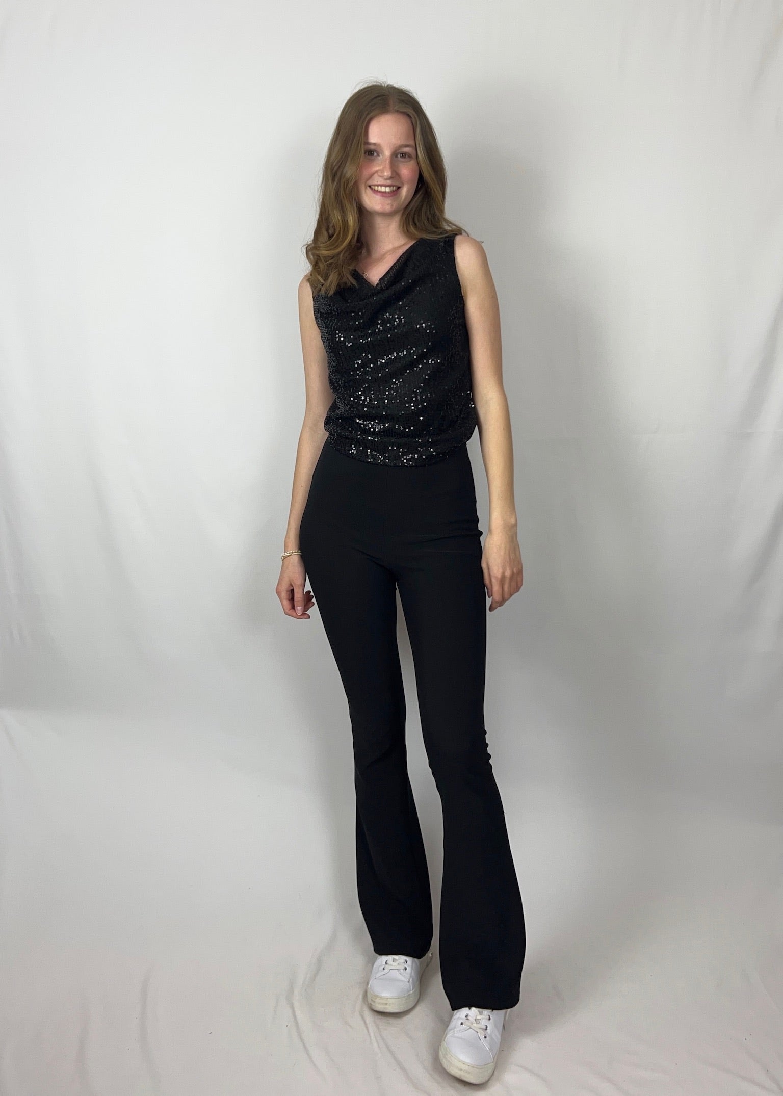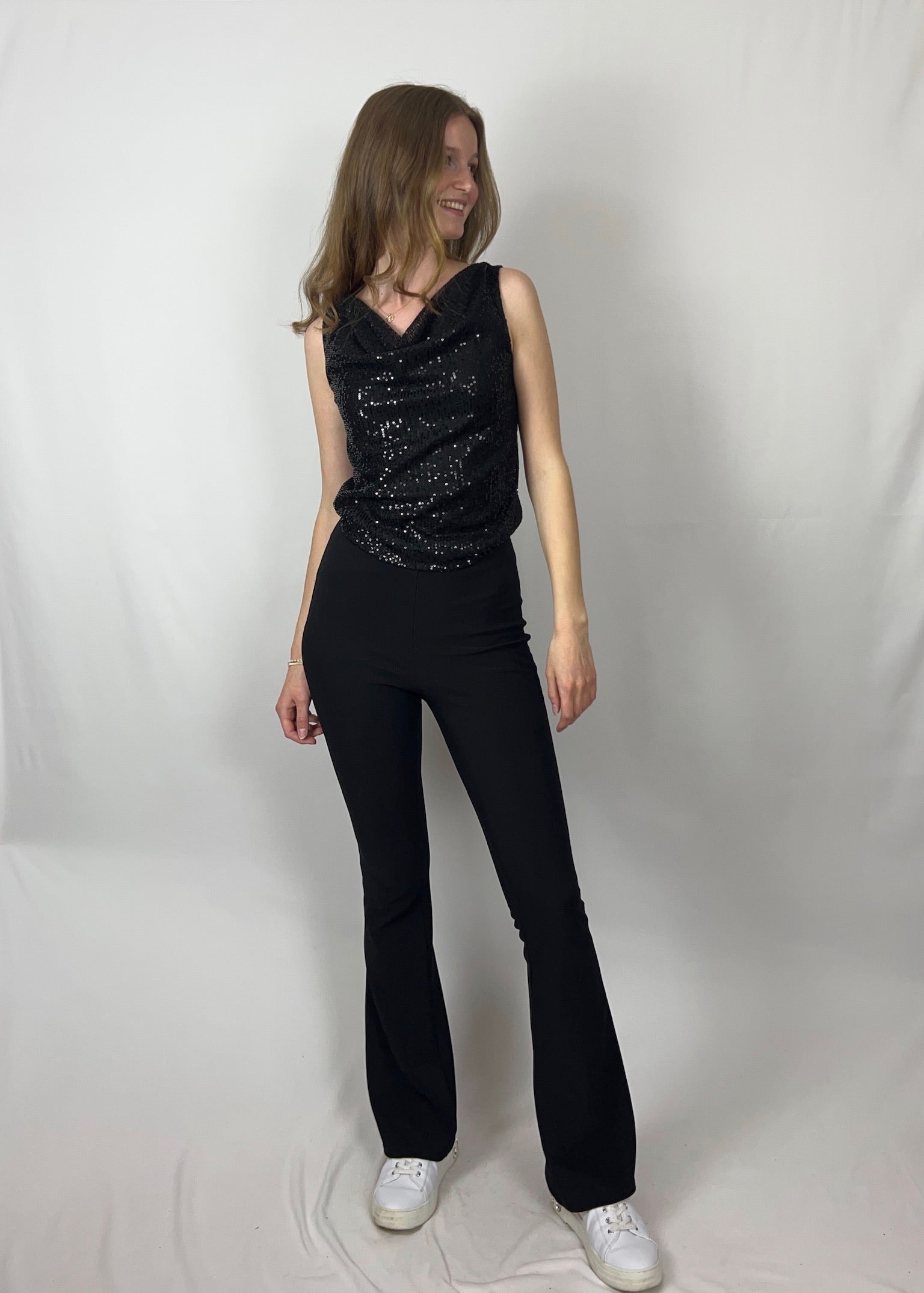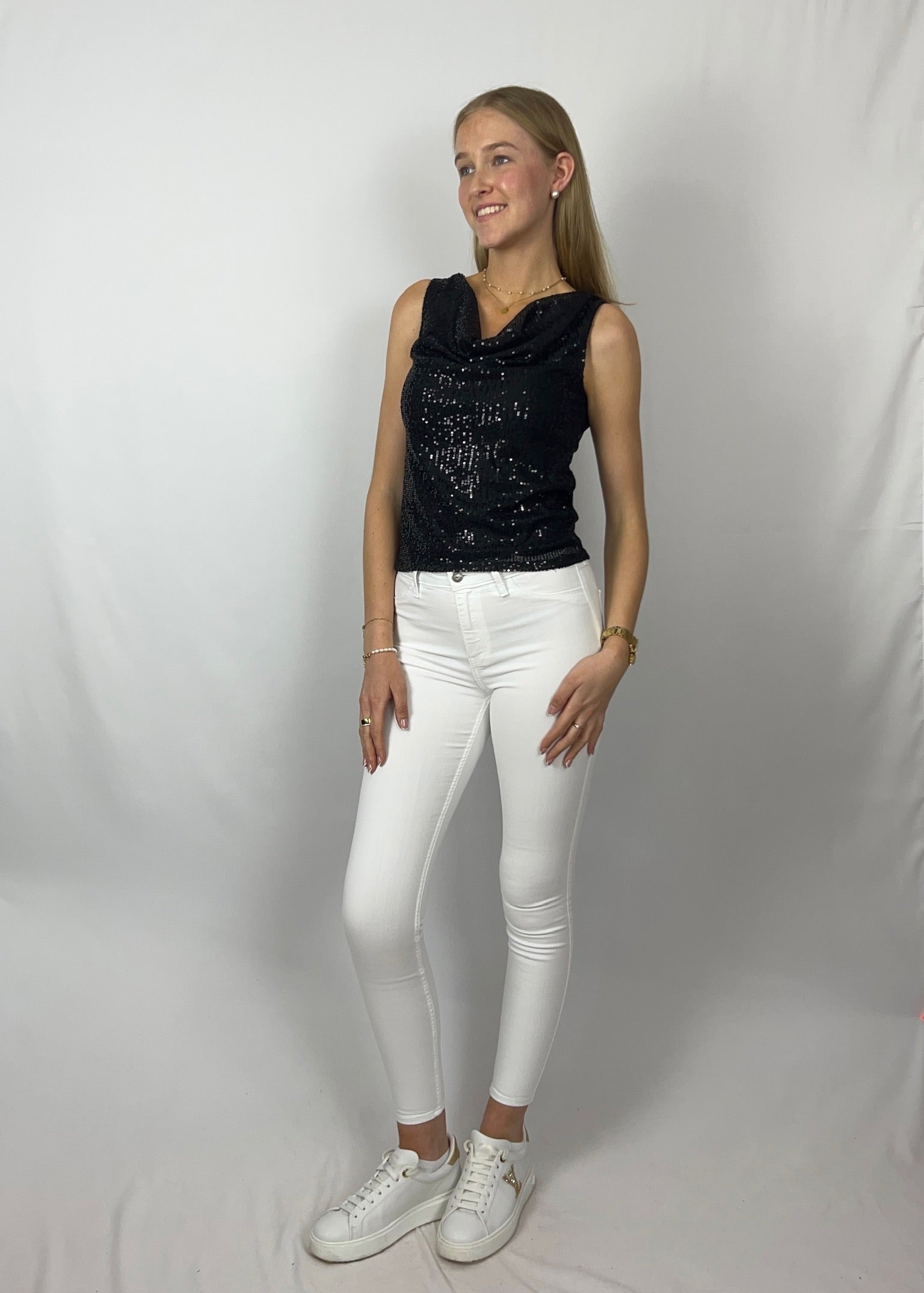 Gianna ist ein sanfter Hingucker mit eleganter Ausstrahlung. Der locker fallende Wasserfallausschnitt in Kombination mit schimmernden Pailletten sorgt für ein edles Funkeln. Der leichte, angenehm zu tragende Stoff passt sich schön an und verleiht dem Top eine fließende Silhouette.