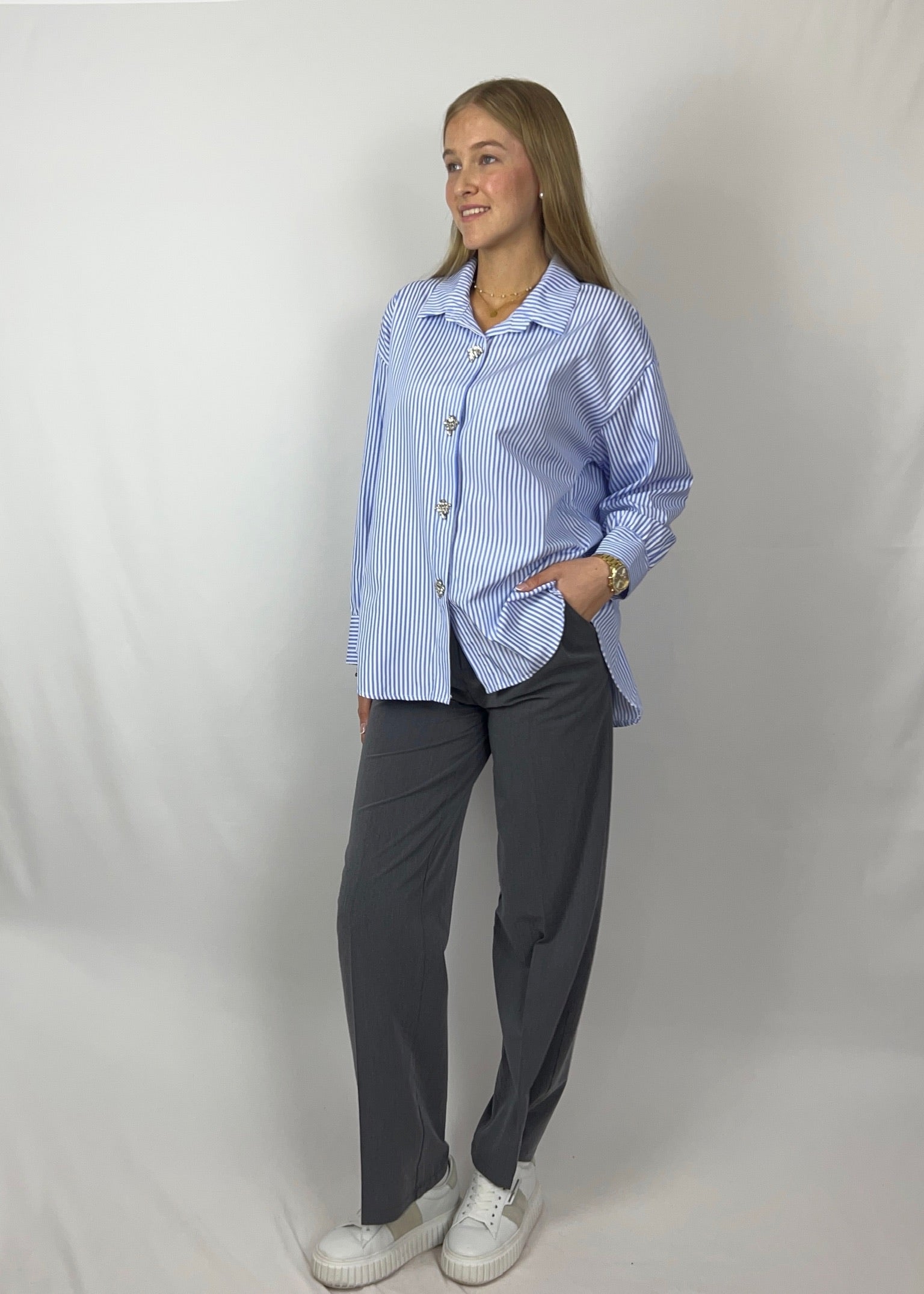 Ob fürs Büro, den Brunch oder den City-Style: Dieses Hemd ist ein echtes It-Piece. Die lockere Oversize-Passform trifft auf funkelnde Schmuckknöpfe, die jedem Outfit das gewisse Extra verleihen. Lässig zu Jeans oder elegant unter einem Blazer – sie lässt sich vielseitig kombinieren und sorgt immer für einen stilvollen Auftritt.