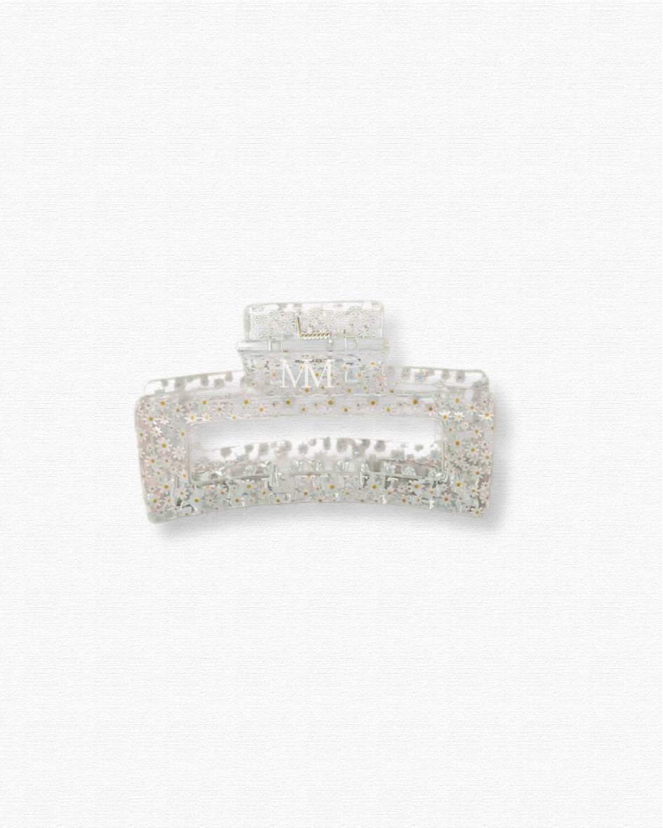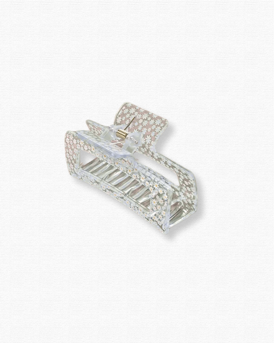 Diese transparente Haarklammer mit feinem Gänseblümchen-Muster verleiht deinem Look eine leichte, frische Note. Das zarte Design trifft auf ein stabiles, alltagstaugliches Material, das auch bei mittellangen bis längeren Haaren für sicheren Halt sorgt. Ideal für verspielte Sommerlooks, entspannte Hochsteckfrisuren oder einfach als liebevolles Detail im Haar – ein Accessoire, das Leichtigkeit und Funktion perfekt verbindet.