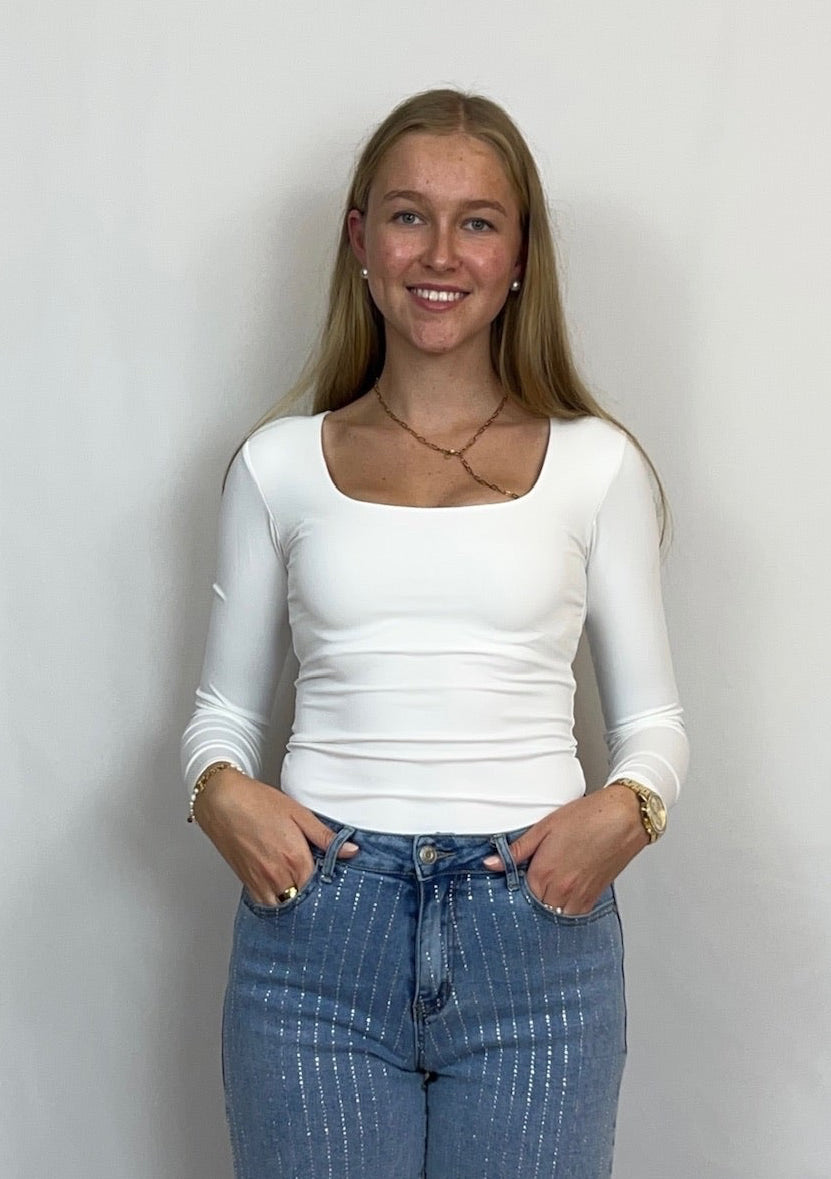 Lana ist ein leicht super weiches Langarm-Oberteil mit kantigem Ausschnitt. Der eng anliegende Schnitt betont die Figur, während das elastische Material für Komfort im Alltag sorgt. Ob solo getragen oder als Layering-Piece – Lana passt immer.