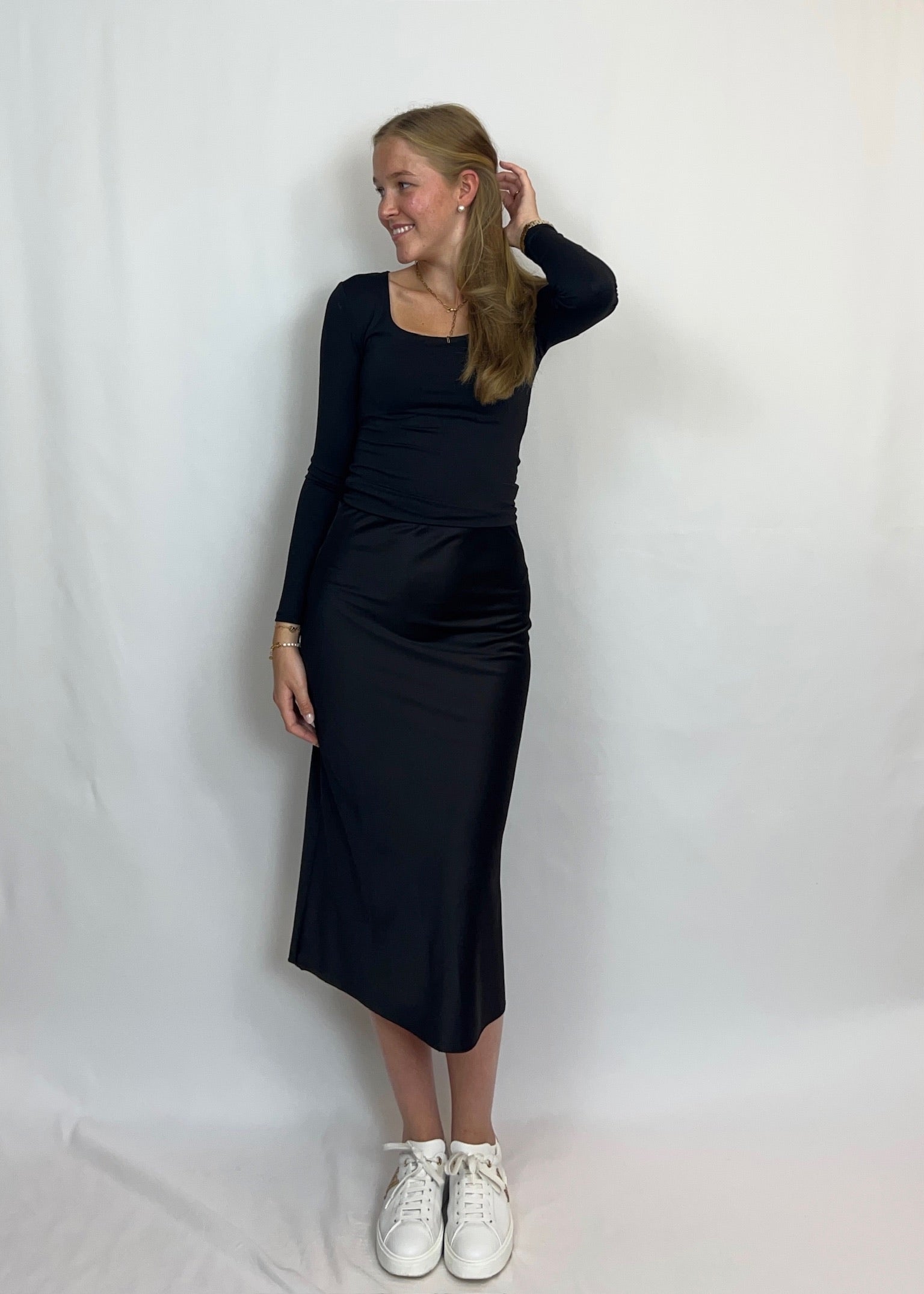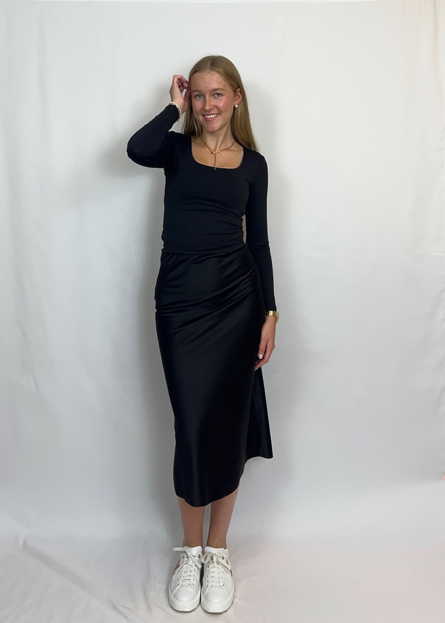Lana ist ein leicht super weiches Langarm-Oberteil mit kantigem Ausschnitt. Der eng anliegende Schnitt betont die Figur, während das elastische Material für Komfort im Alltag sorgt. Ob solo getragen oder als Layering-Piece – Lana passt immer.