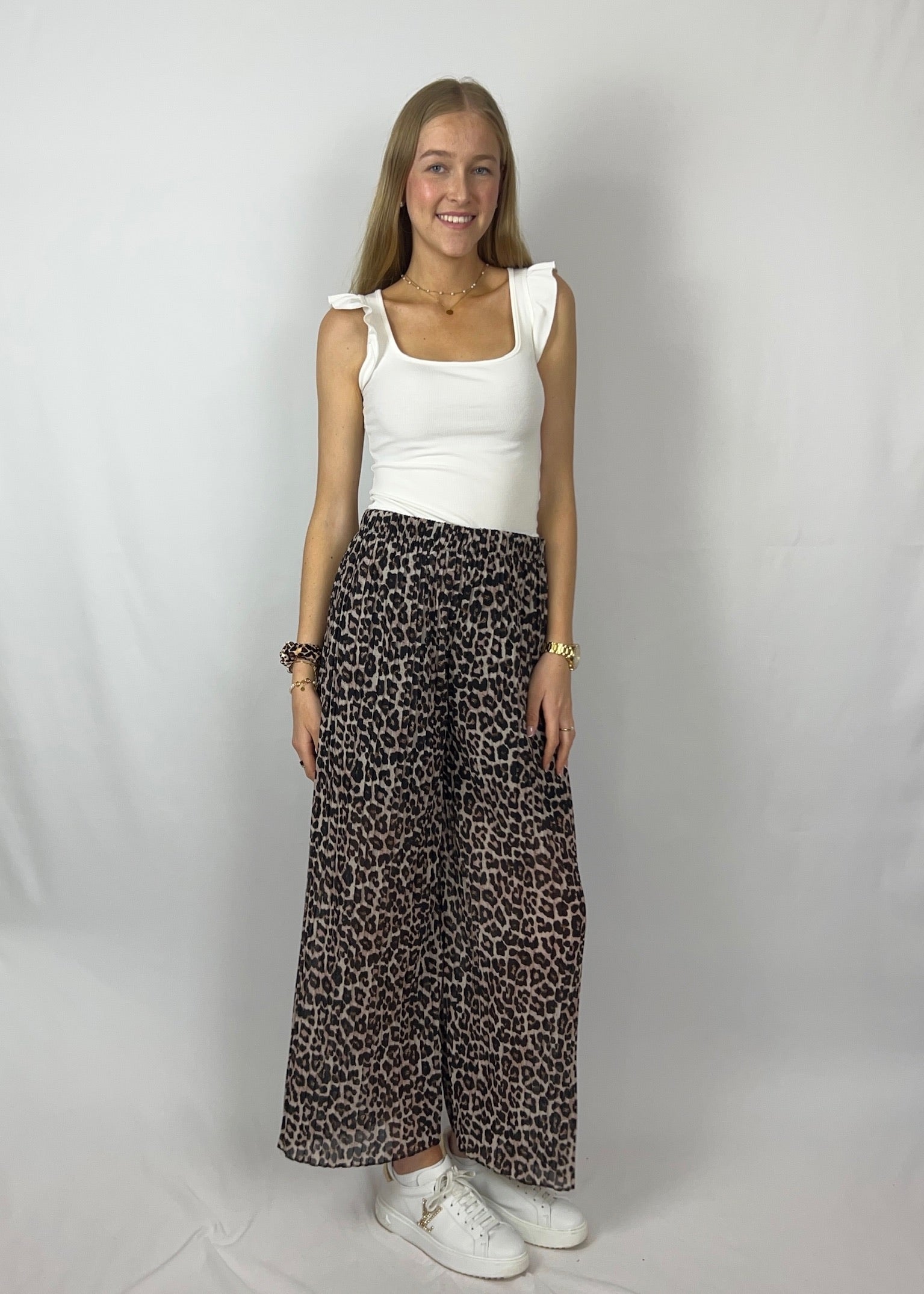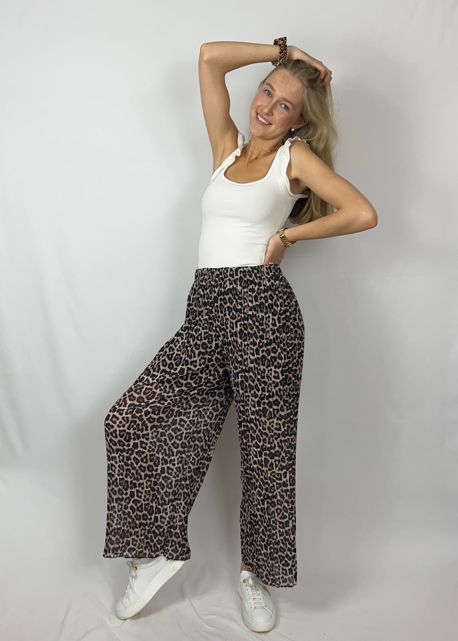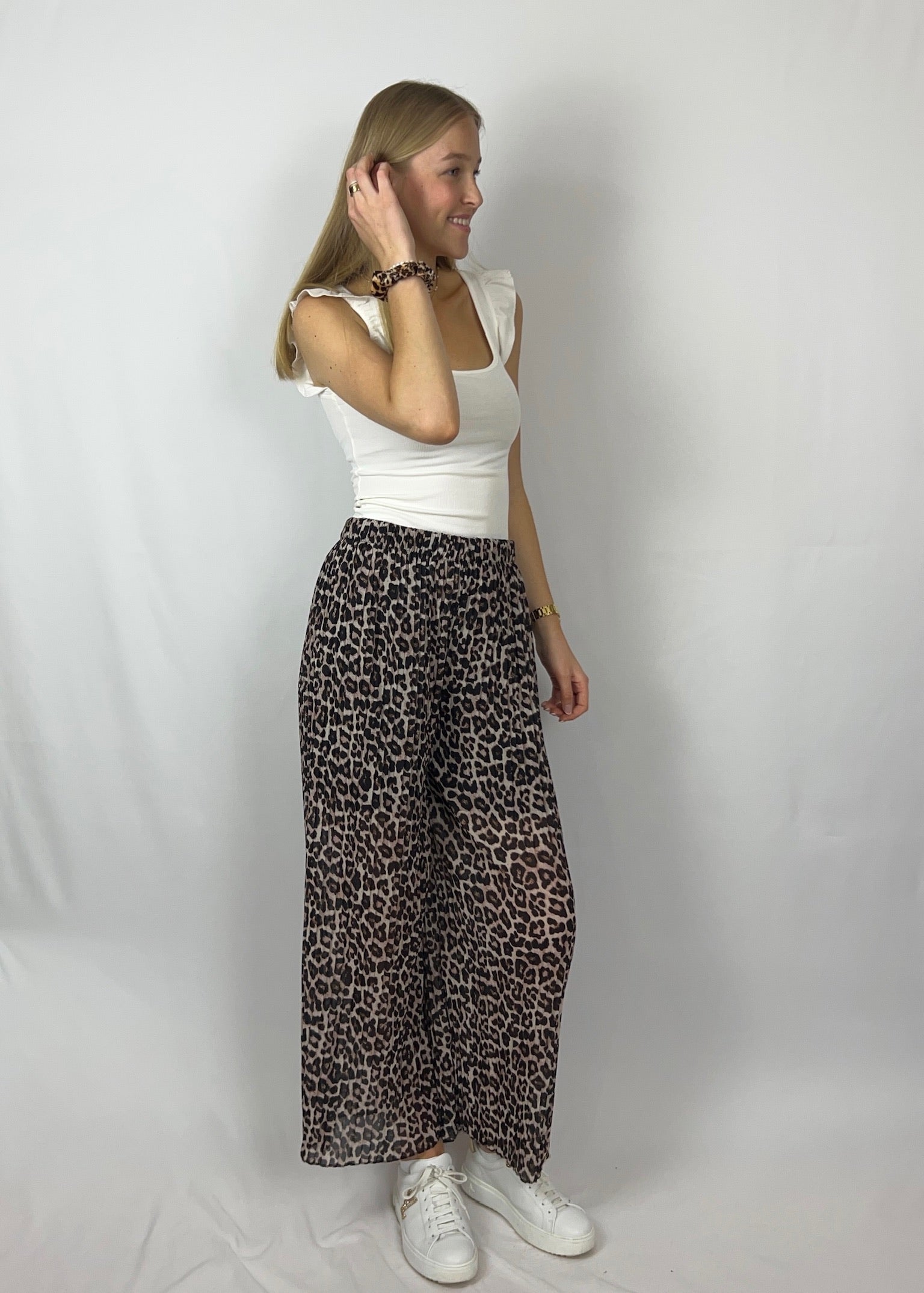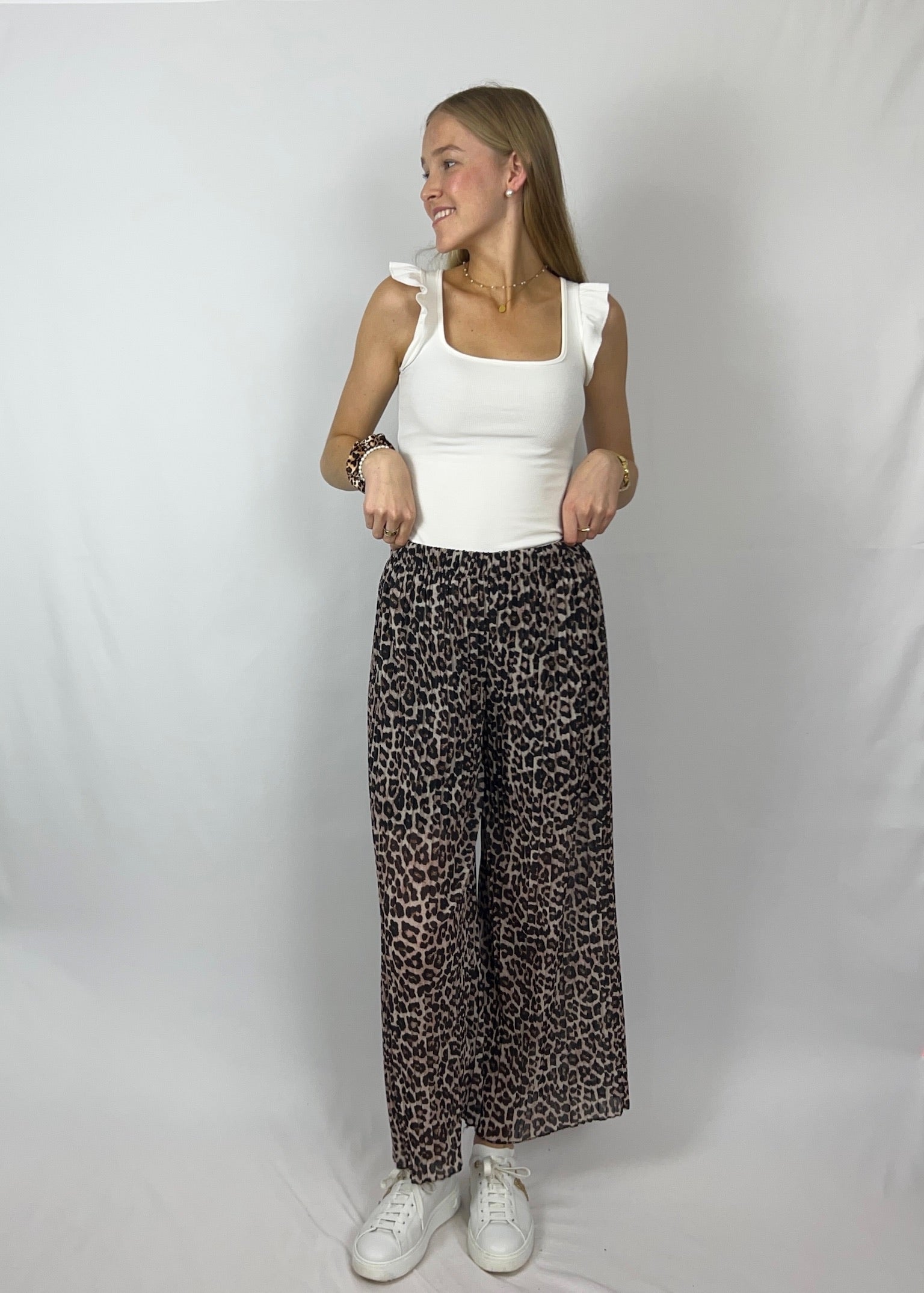 Levina x Tonia x Scrunchie – Plissee-Hose, Rüschen-Top & Haar-Accessoire 🐆🤍🎀