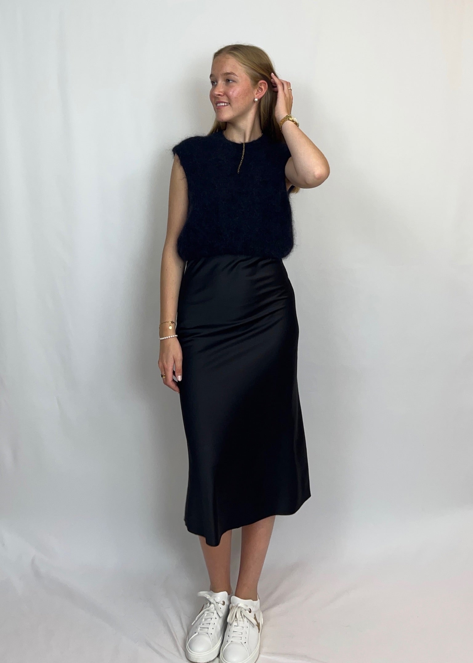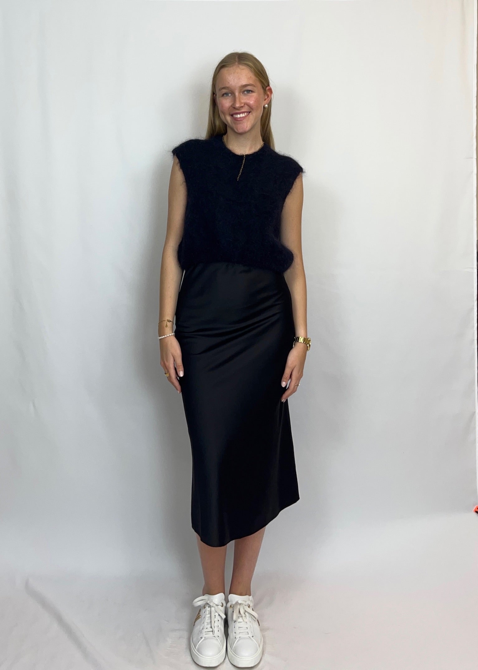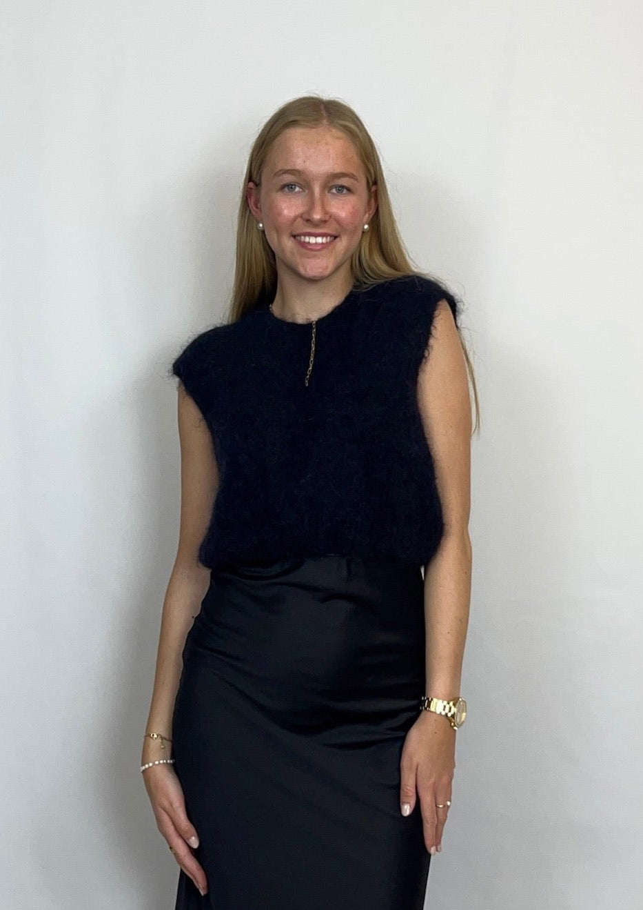 Der Mona Mohairpullunder ist der Inbegriff von Understatement-Chic. Mit seinem schlichten, ärmellosen Design und dem Mohair-Mix bringt er Leichtigkeit und Eleganz in jedes Outfit. Der runde Ausschnitt und die kompakte Länge (50 cm) machen ihn zum vielseitigen Stylingpartner – ob über einer Bluse fürs Office, mit Turtleneck für kühle Tage oder ganz pur für einen modernen Look. Ein Essential, das Minimalismus und Komfort perfekt vereint.