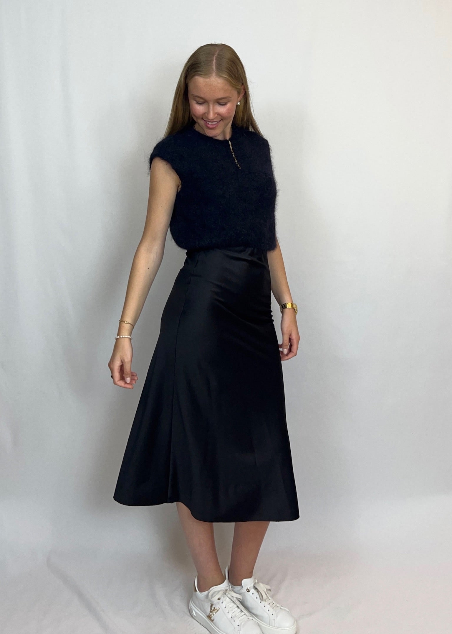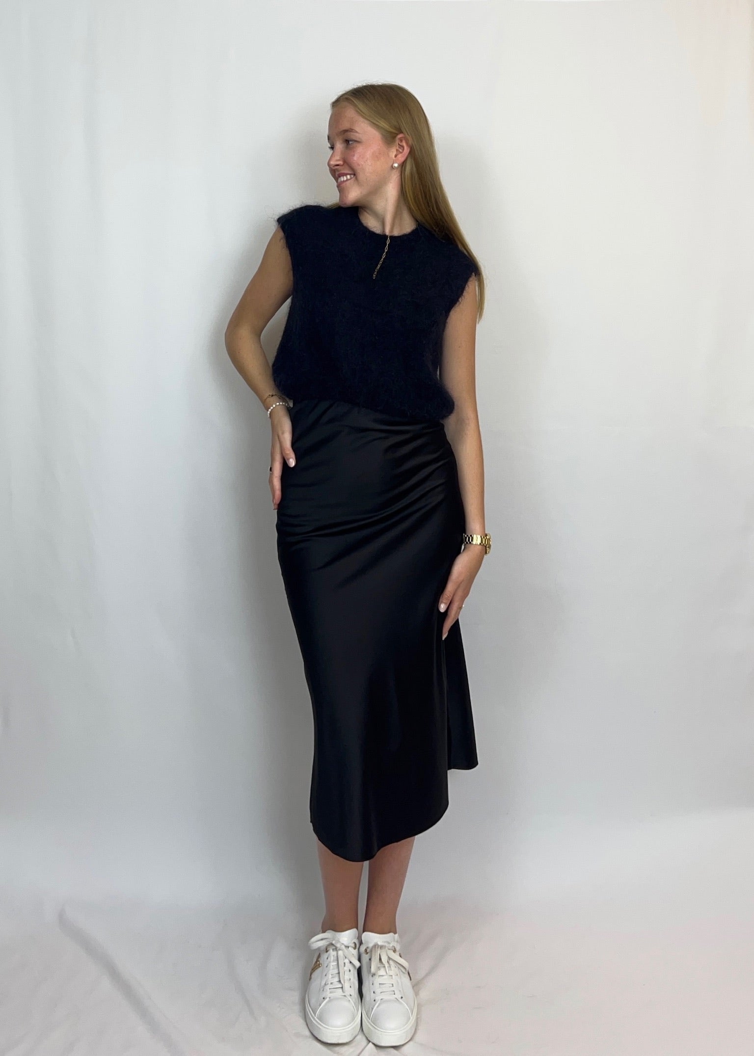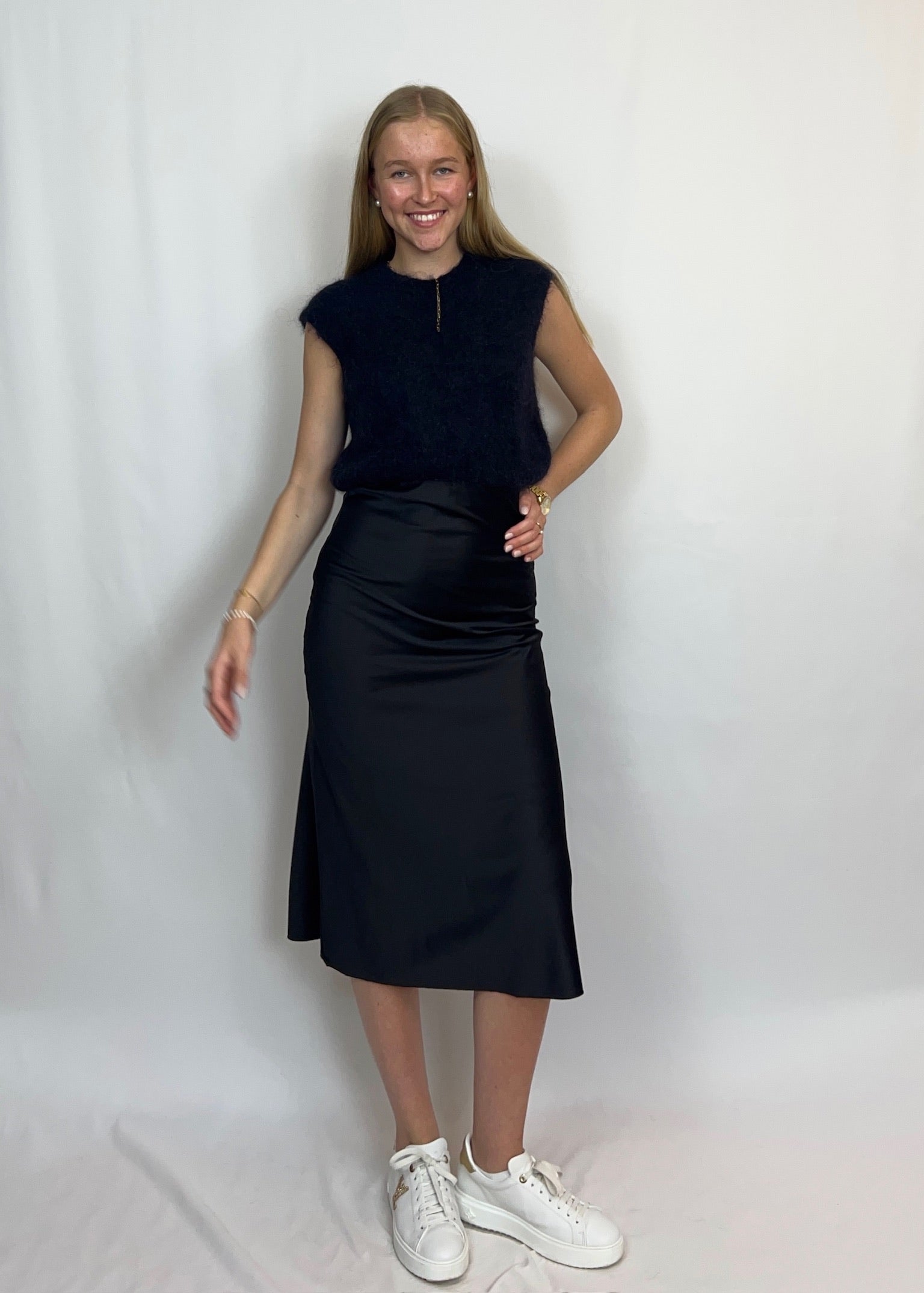Der Mona Mohairpullunder ist der Inbegriff von Understatement-Chic. Mit seinem schlichten, ärmellosen Design und dem Mohair-Mix bringt er Leichtigkeit und Eleganz in jedes Outfit. Der runde Ausschnitt und die kompakte Länge (50 cm) machen ihn zum vielseitigen Stylingpartner – ob über einer Bluse fürs Office, mit Turtleneck für kühle Tage oder ganz pur für einen modernen Look. Ein Essential, das Minimalismus und Komfort perfekt vereint.
