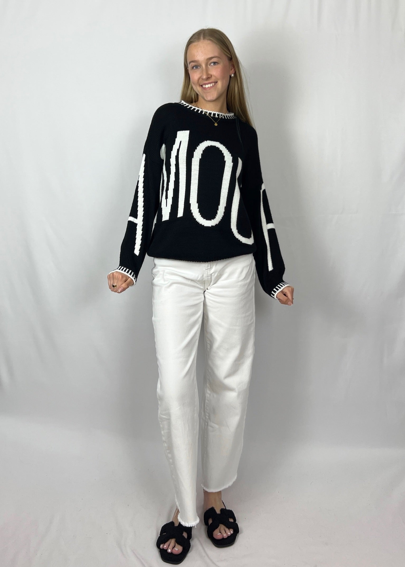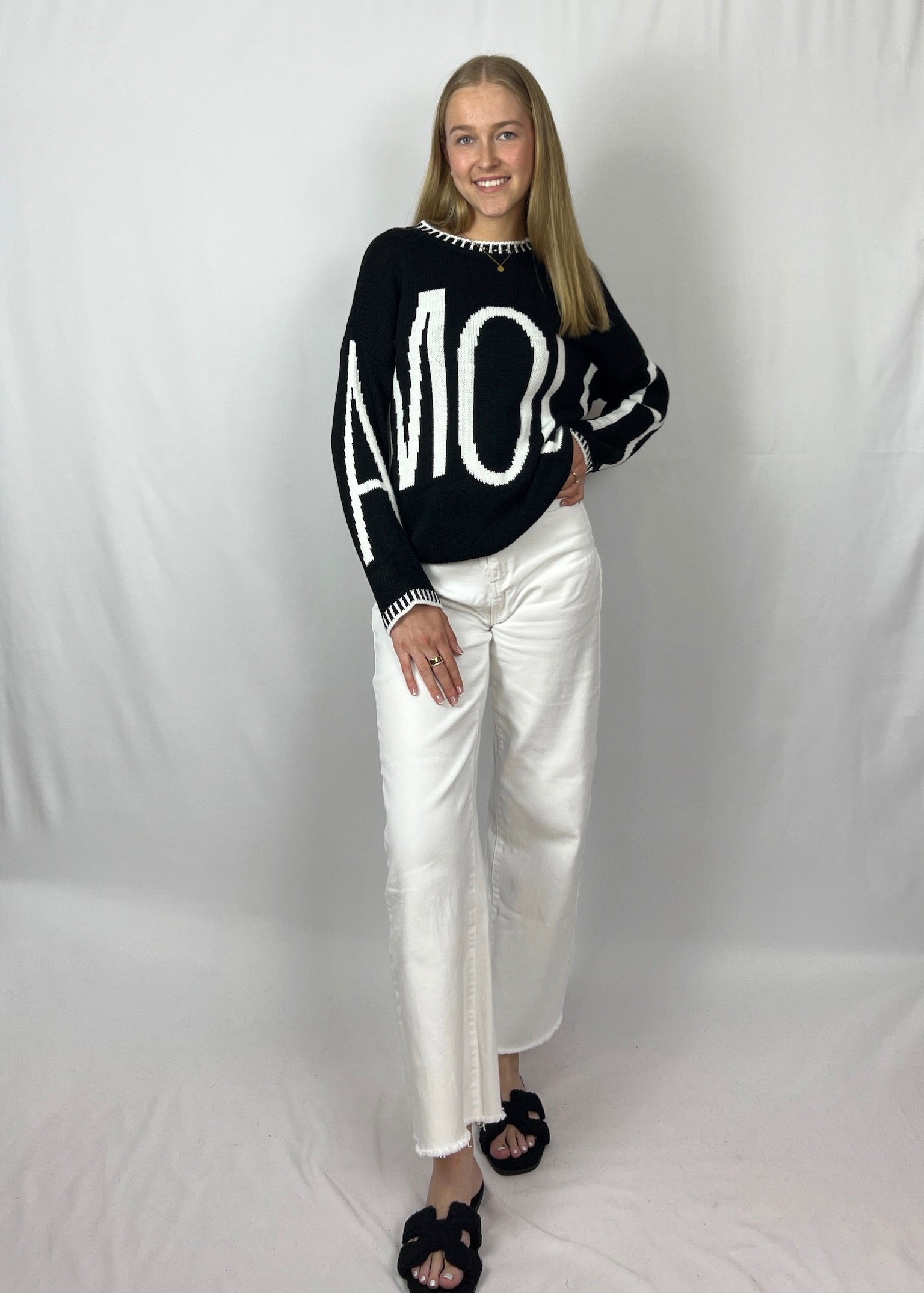 Schlicht in der Form, liebevoll im Detail: Der Pullover Amour überzeugt mit seinem soften Material und dem Schriftzug „Amour“ auf der Brust.