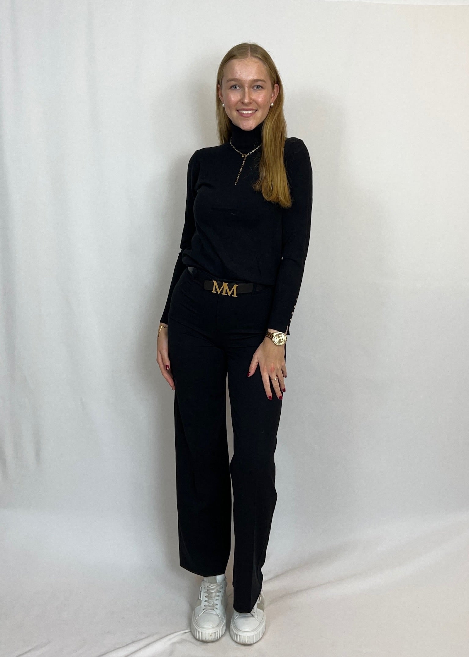 Der Romina Rollkragenpullover ist das perfekte Zusammenspiel aus Komfort und Raffinesse. Sein feiner Strick sorgt für eine sanfte Haptik und schmeichelt jeder Silhouette. Der klassische Rollkragen bietet kuschelige Wärme, während die goldenen Knöpfchen am Unterarm dezente Glamour-Akzente setzen – ein Detail, das schlichte Outfits sofort aufwertet.