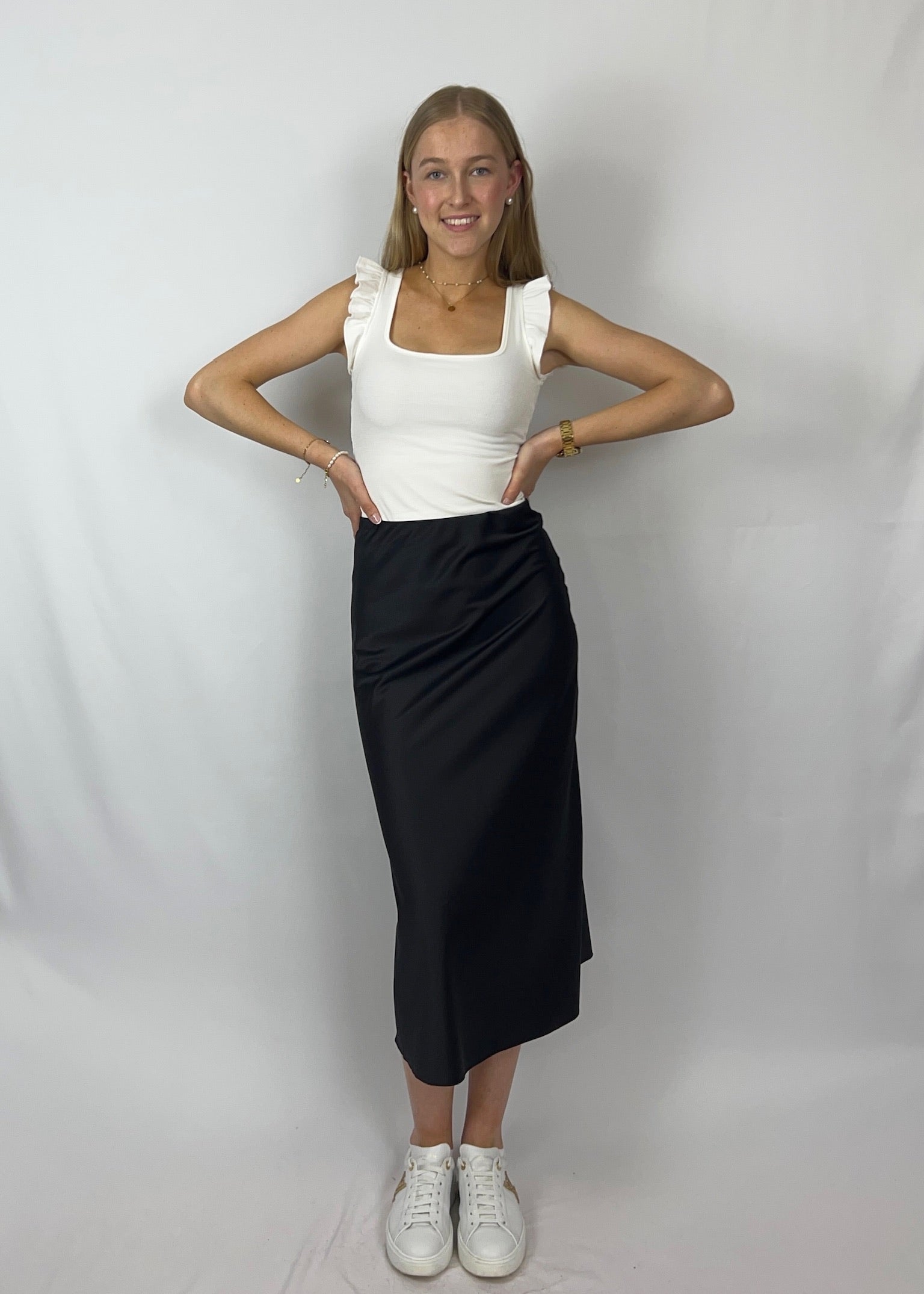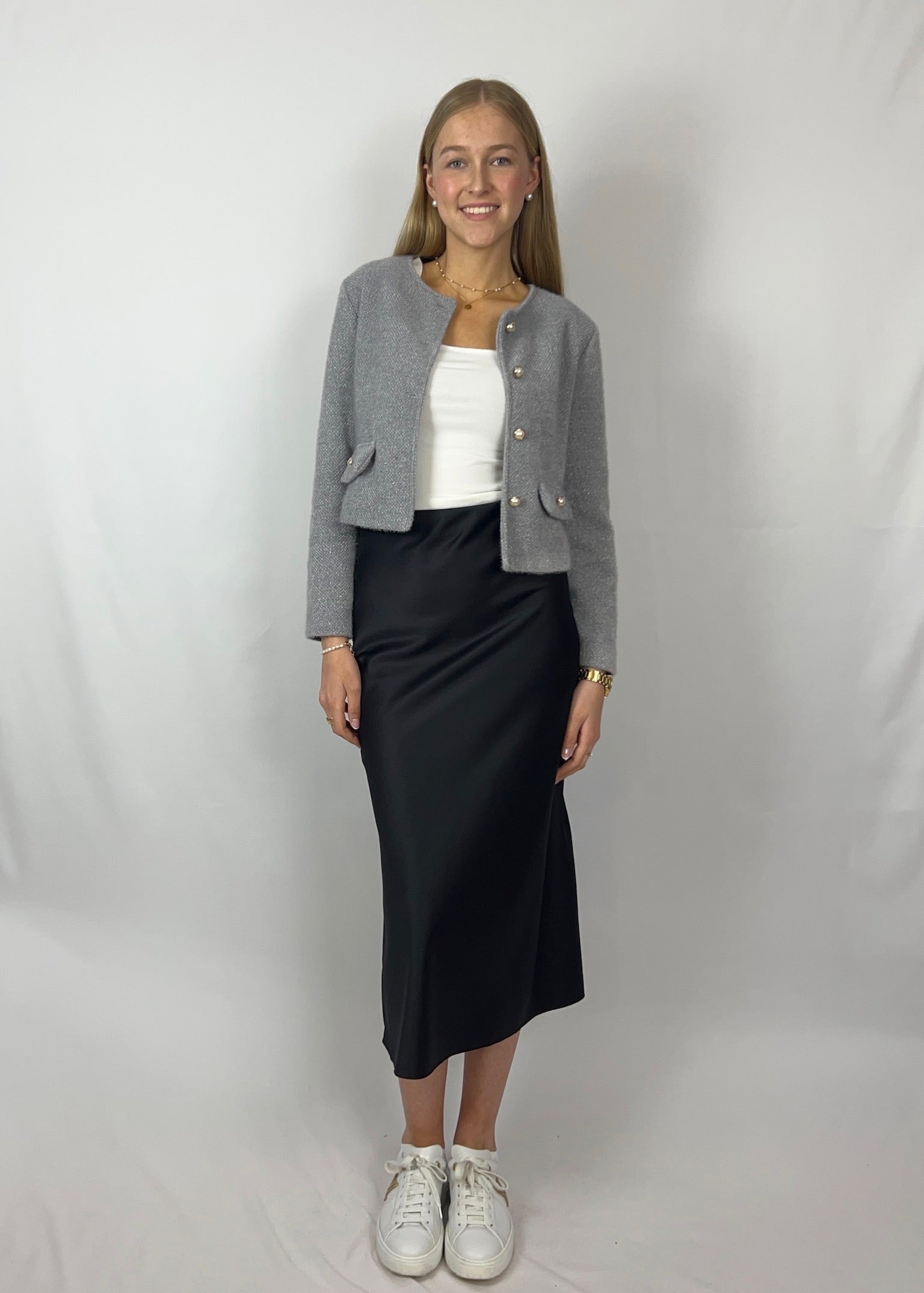 Ein modernes Quartett aus edlem Satin, verspielten Rüschen, elegantem Tweed und praktischem Haar-Accessoire – perfekt abgestimmt für deine vielseitigen Looks.