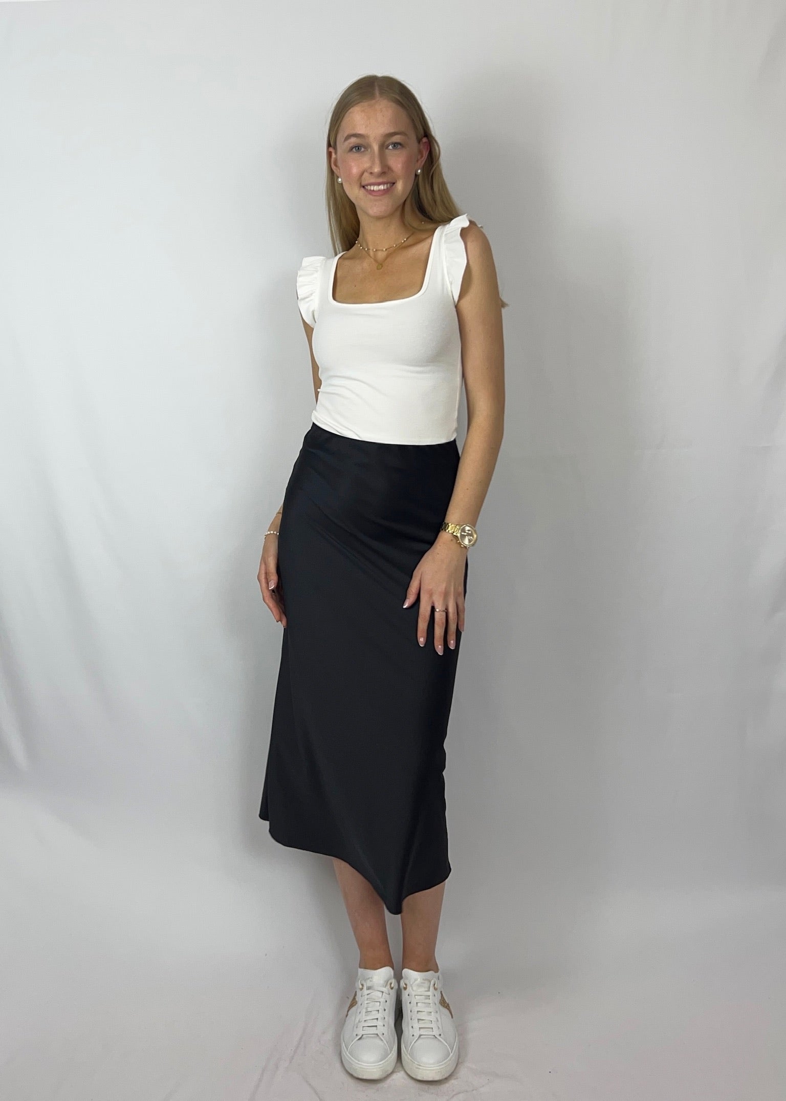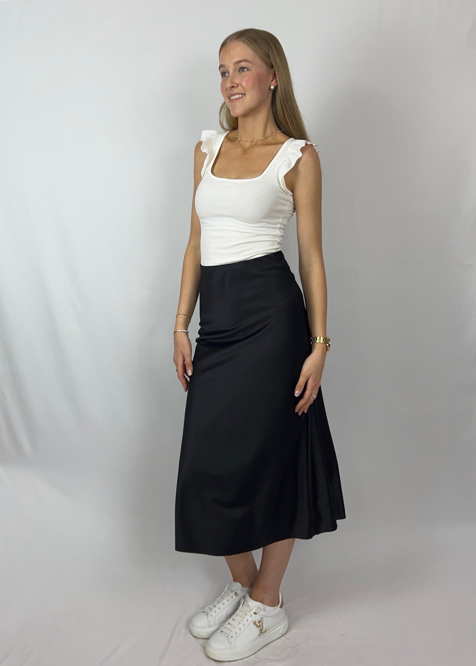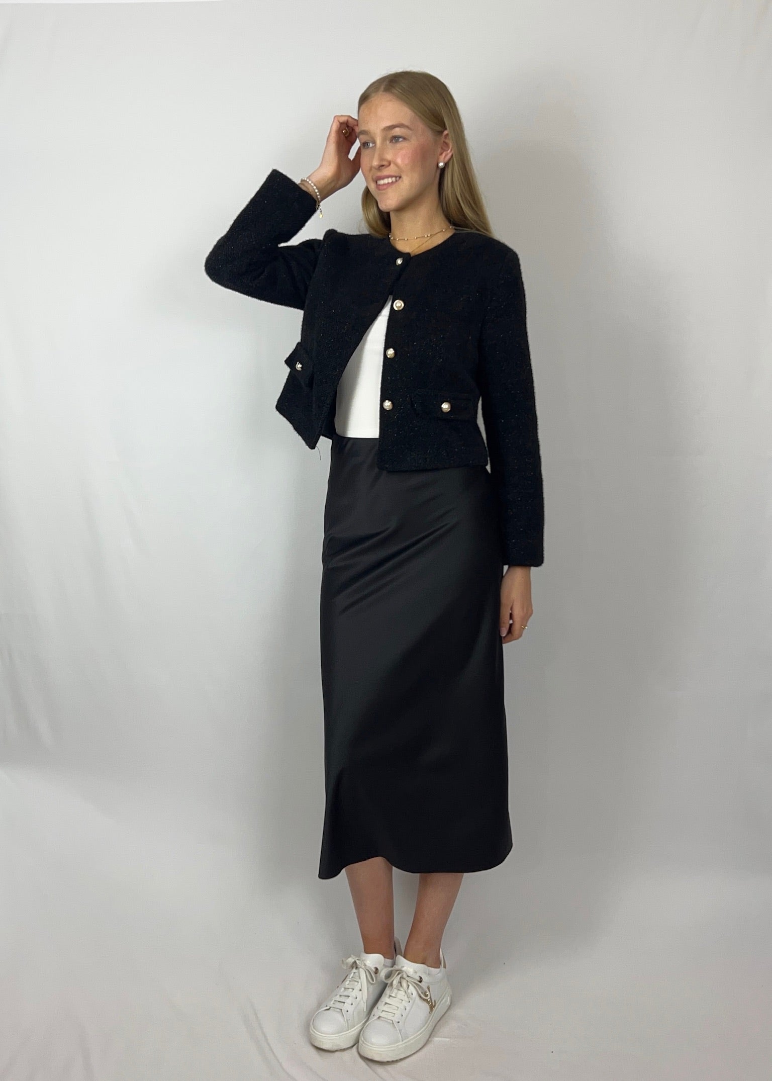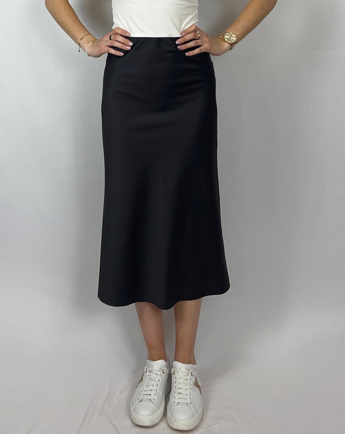Ob mit einfachem T-Shirt, Strickpulli oder Bluse kombiniert: Sarina ist ein Basic Statement-Piece, das sich vielfältig stylen lässt – für Alltag, Abend oder alles dazwischen. Ein Rock für jeden Anlass.