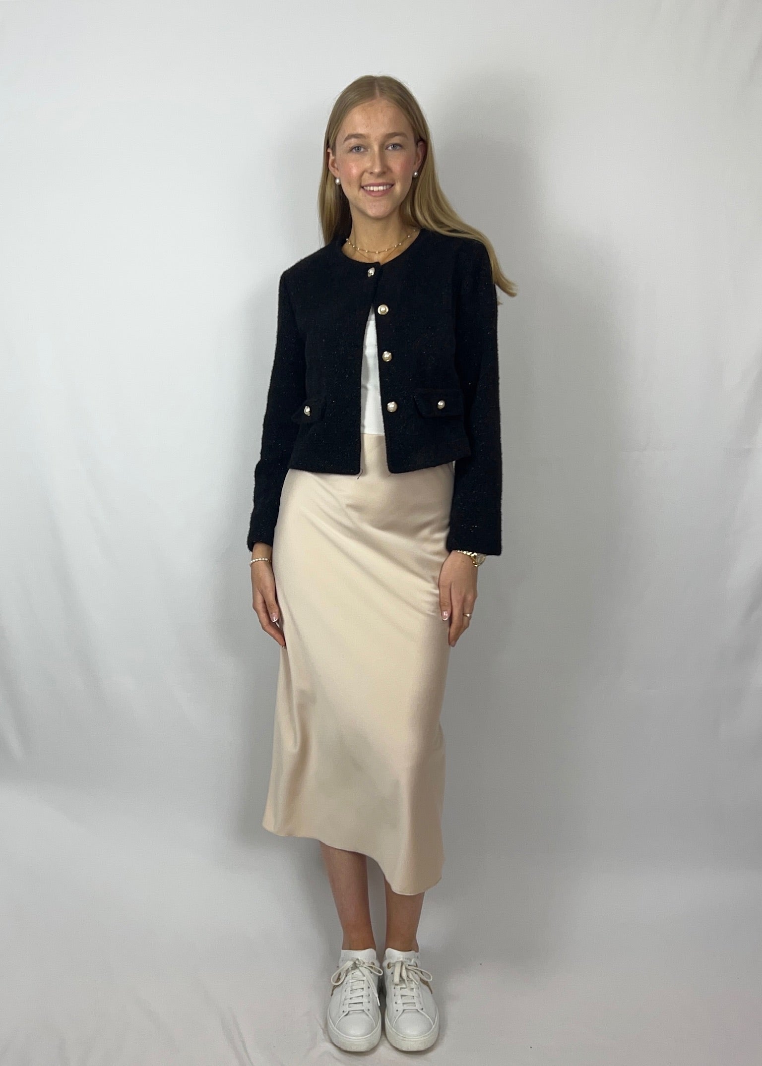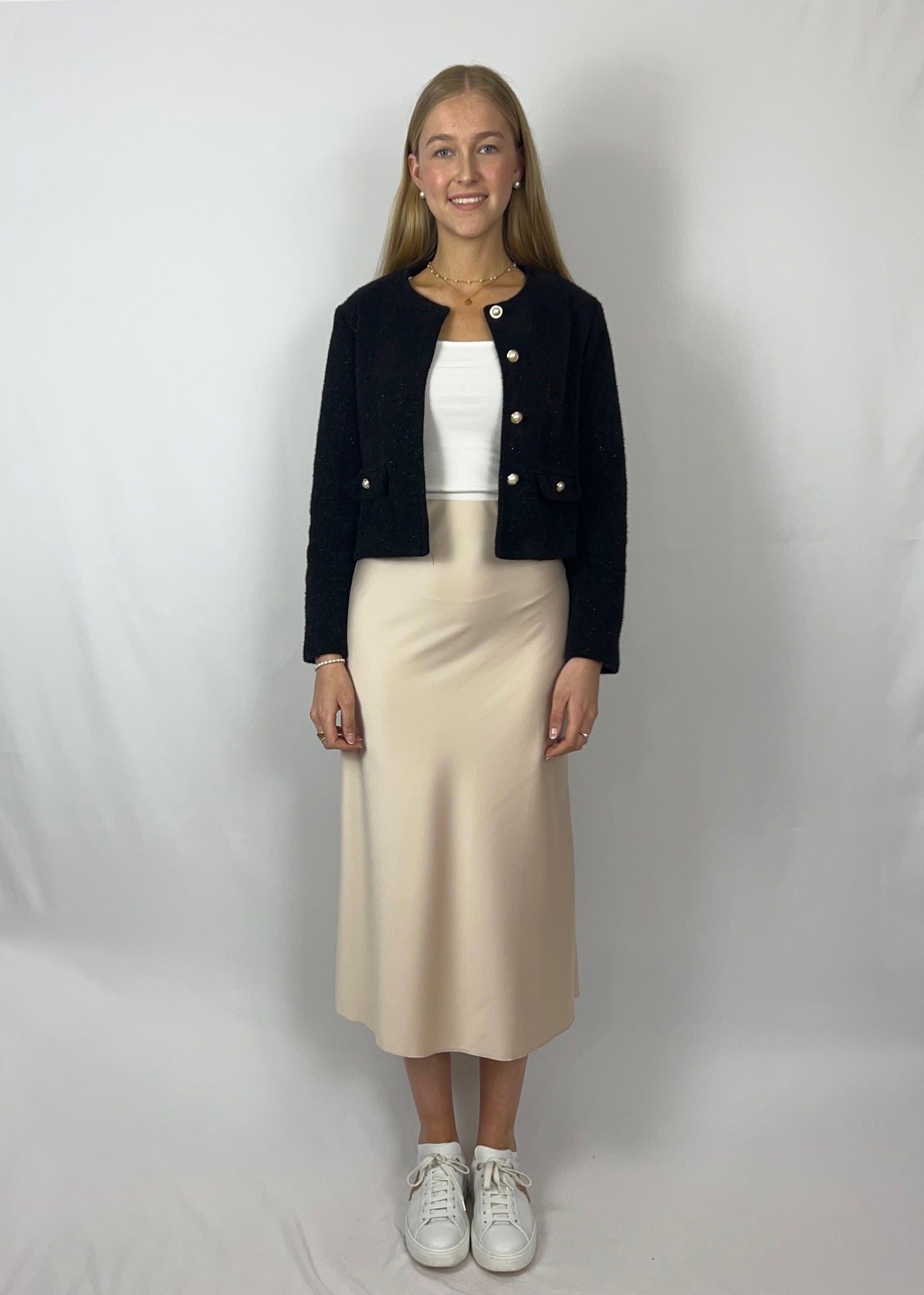 Ob mit einfachem T-Shirt, Strickpulli oder Bluse kombiniert: Sarina ist ein Basic Statement-Piece, das sich vielfältig stylen lässt – für Alltag, Abend oder alles dazwischen. Ein Rock für jeden Anlass.
