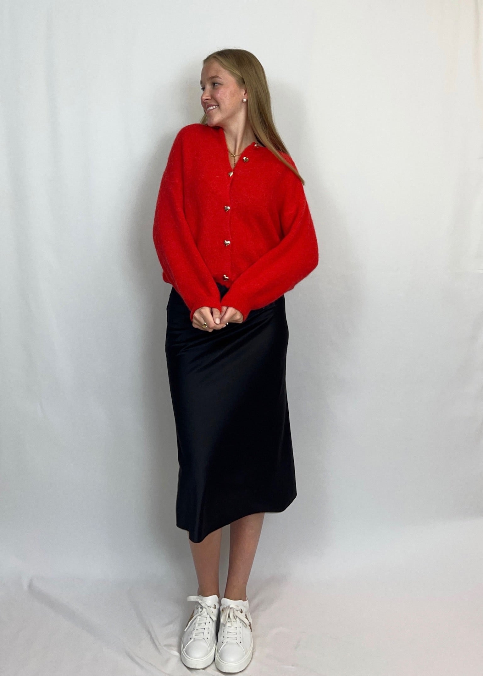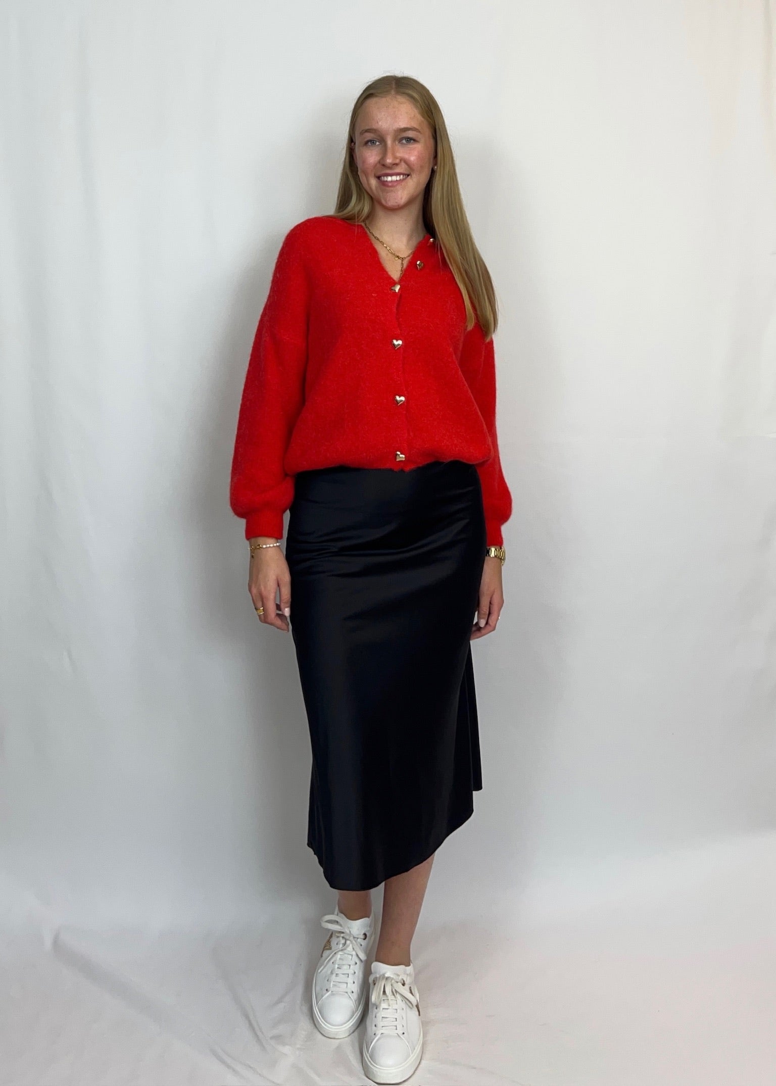 Die Stellara Strickjacke ist ein echtes Wohlfühl-Piece mit stilvollem Twist. Ihr flauschiges Alpaka-Wollgemisch sorgt für Wärme und Leichtigkeit zugleich – ein luxuriöser Begleiter für kühle Tage. Das besondere Highlight: die herzförmigen, goldenen Knöpfe, die dem Cardigan einen femininen und zugleich verspielten Charakter verleihen. Ob zu Jeans im Alltag oder kombiniert mit einem gemusterten Rock für einen auffälligen Auftritt – Stellara verbindet kuscheligen Komfort mit trendiger Raffinesse.