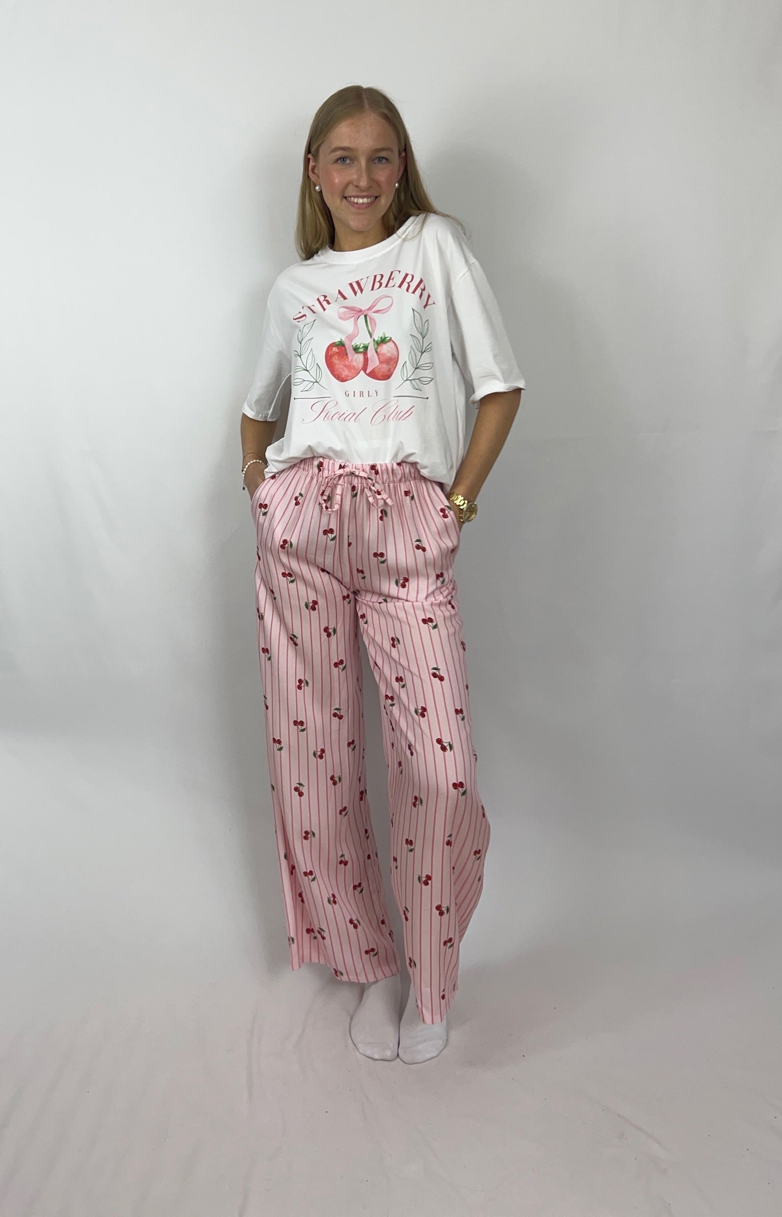 Strawberry x Cherry x Herzchen-Haarklammer – T-Shirt, Pyjama-Hose & Haar-Accessoire 🍓🍒❤️