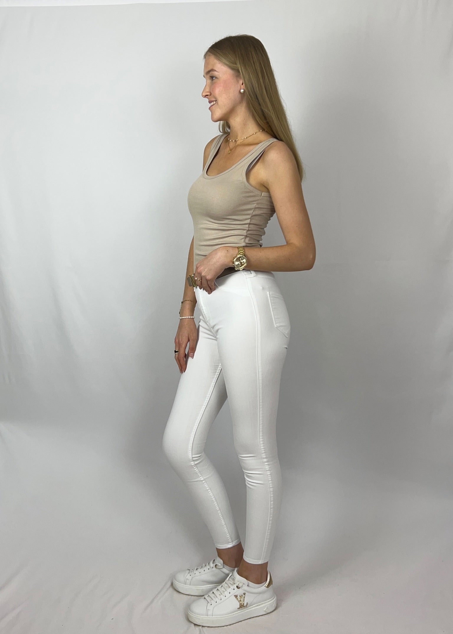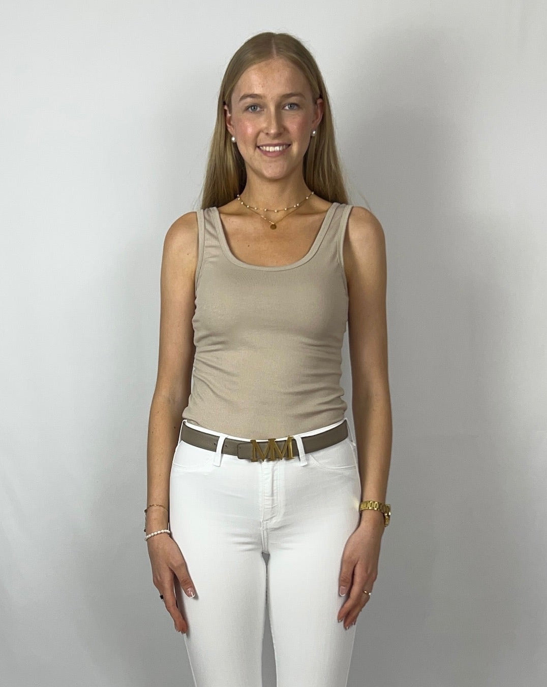 Das figurbetonte Stricktop in Beige schmiegt sich angenehm an die Haut und macht sich ideal als Unterziehteil oder Solo-Piece an warmen Tagen. Toni ist einfach das It-Piece, wenn es um Basic Tops geht.